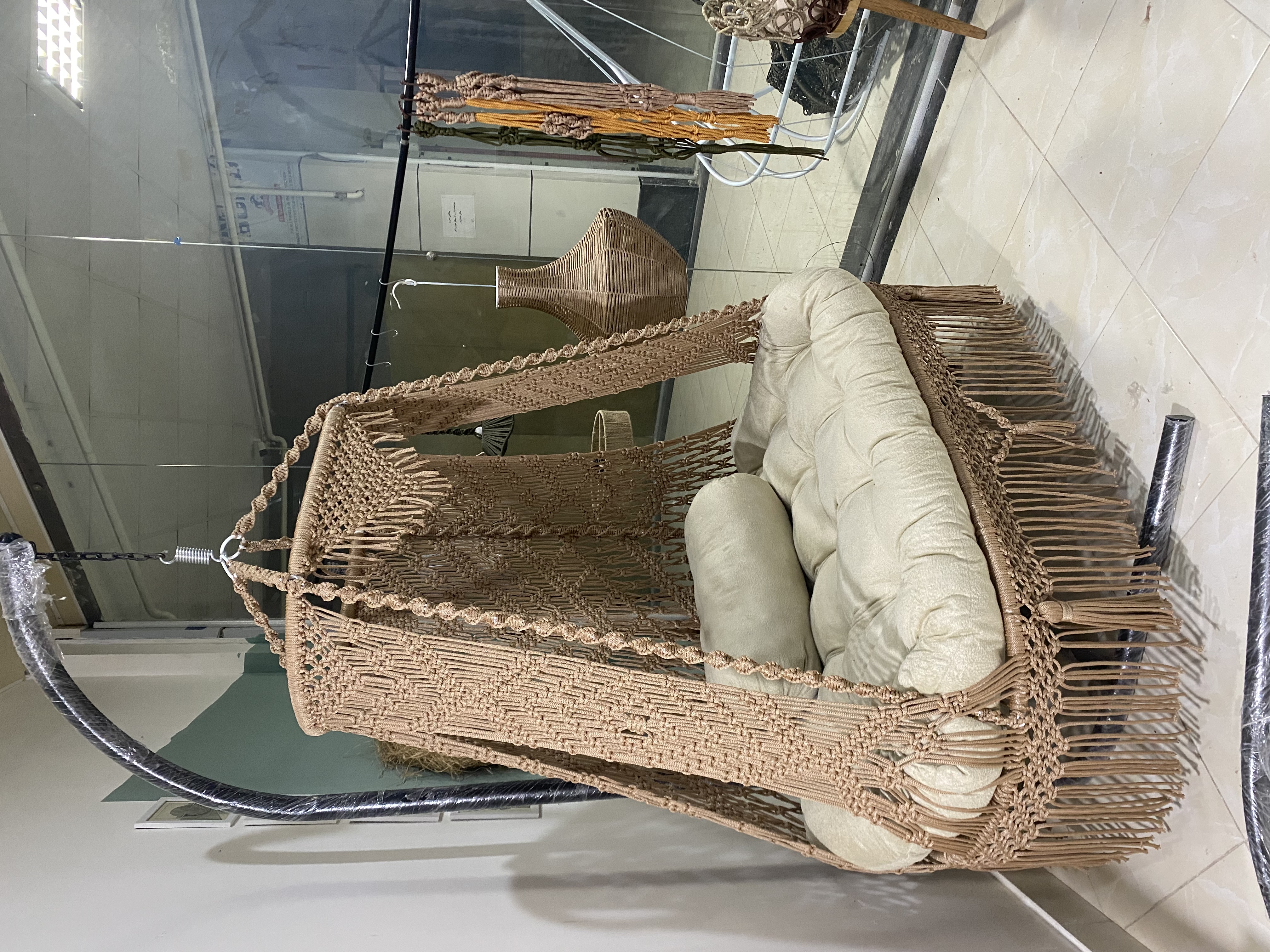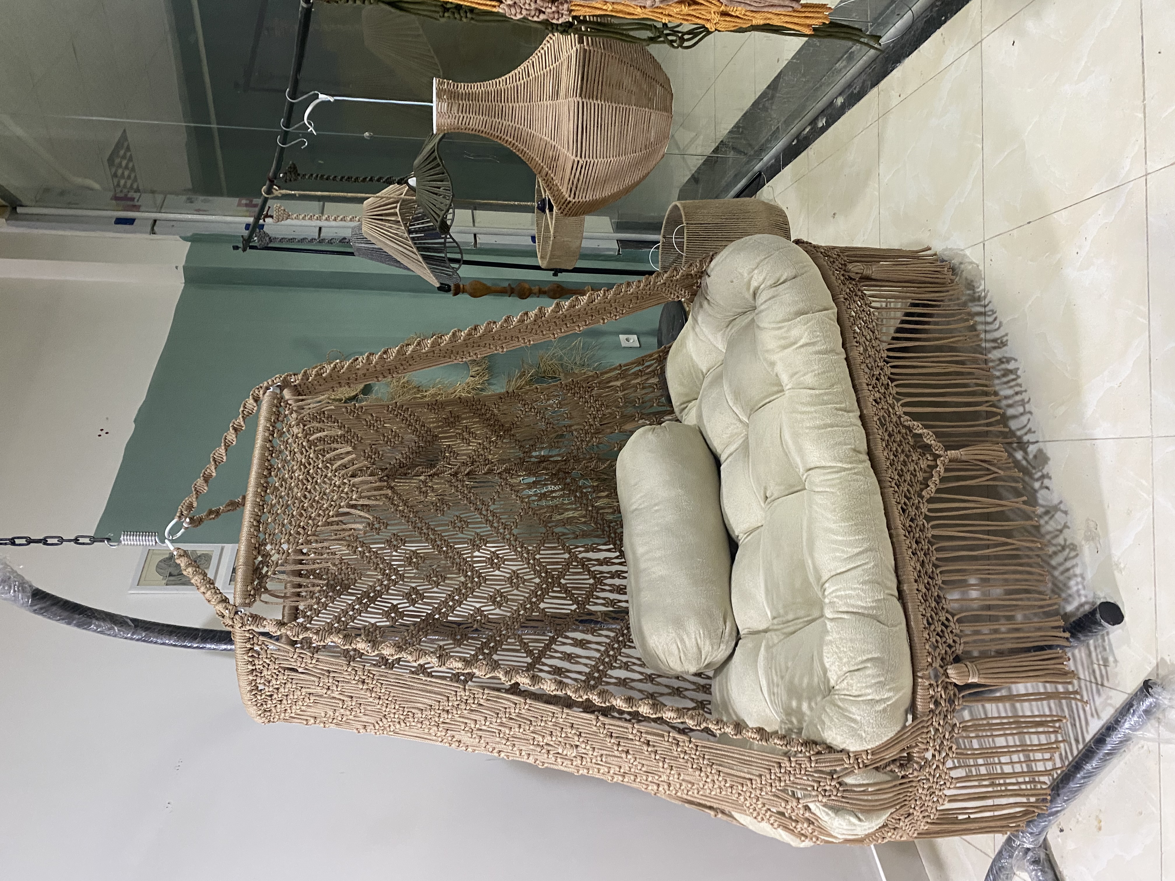 تاب شاهنشین دو نفره دسته ها زنجیر جوش کاری شده نخ پلی استر بدنه اهنی وزن تقریبی ۱۸ کیلو همراه با تشک و بالشت و پایه موجود میباشد تماس بگیرید
